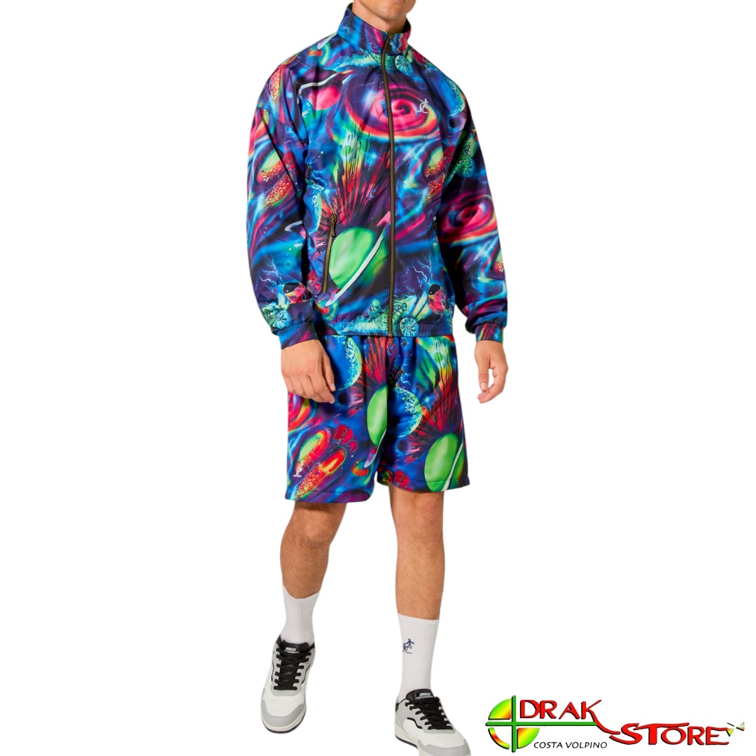 Pantaloncini corti / shorts Australian in tessuto tecnico elasticizzato ultra leggero foderato in rete, a fantasia pianeti multi color, con logo “canguro” bianco ricamato sul fondo, tasche e elastico in vita con coulisse regolabile. Composizione 100% poliestere.
