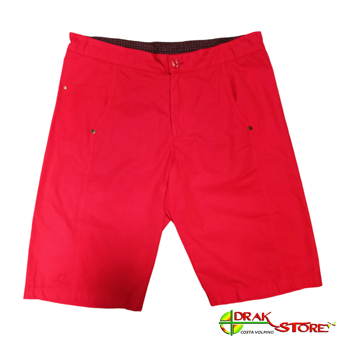 Pantaloncini corti / Shorts Australian in cotone, rossi con logo “canguro” tono su tono ricamato sul fondo, tasche, bottone e zip in vita. Composizione 100% cotone.