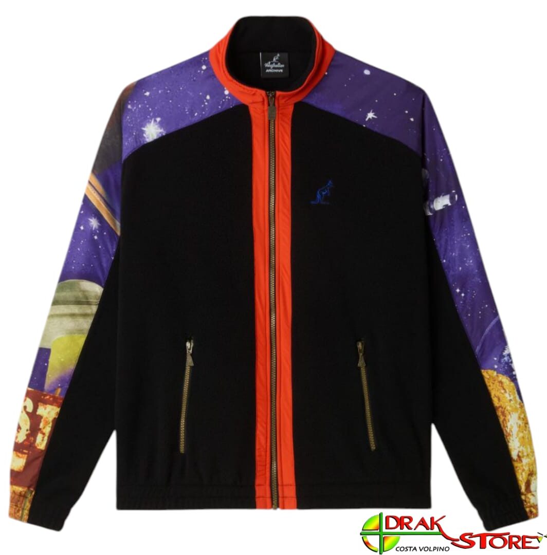 Tuta completa Australian a base nera, con inserti a fantasia bianca, verde militare e ottanio, realizzata con tessuto tecnico esterno, foderato in cotone. La giacca presenta logo “canguro” stampato sul cuore, elastico in vita ed ai polsi, cerniera alle tasche. Il pantalone presenta scritta “Australian” stampata sotto la tasca, elastico con coulisse regolabile in vita ed elastico alle caviglie. composizione 100% poliestere.